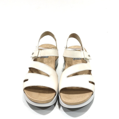 Sandalia de tiras ajustables con cinta textil adhesiva, fabricada en piel, con plantillas extraíbles y suela de goma
