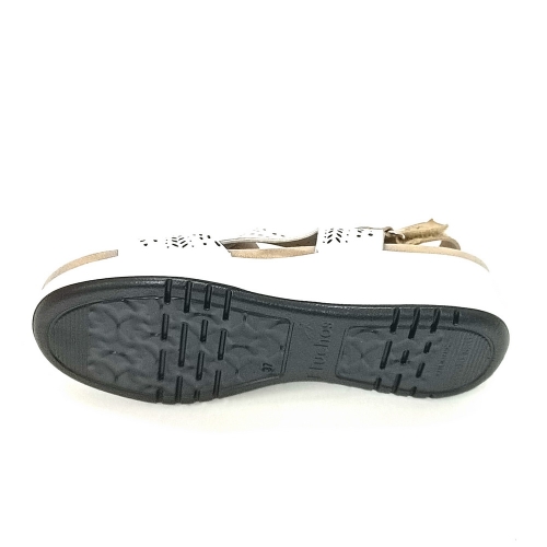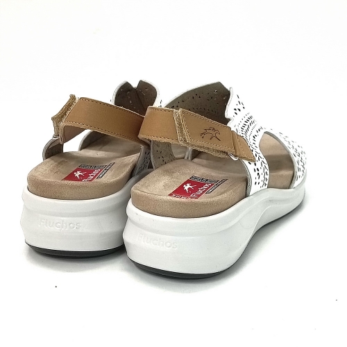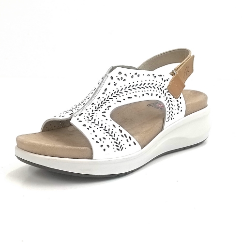 Sandalia fabricada en piel troquelada blanca, con cuña de 5 cm y plataforma de 3 cm