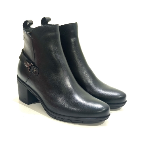 Botín con cremallera lateral, fabricado en piel, con tacón de 4 cm y suela de goma