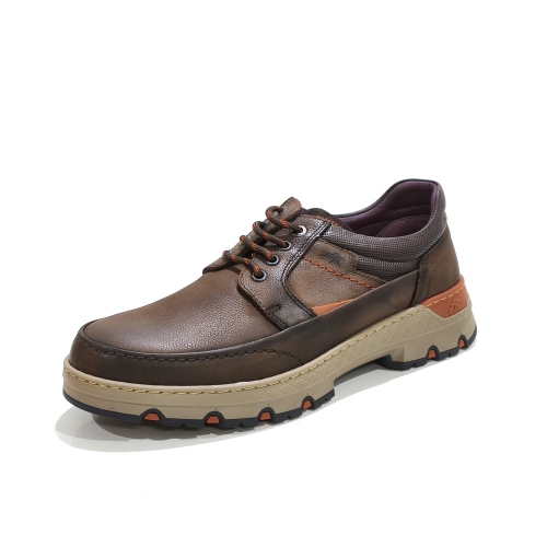 Zapato de cordoneras, fabricado en piel engrasada, con plantillas extraíbles y suela de goma