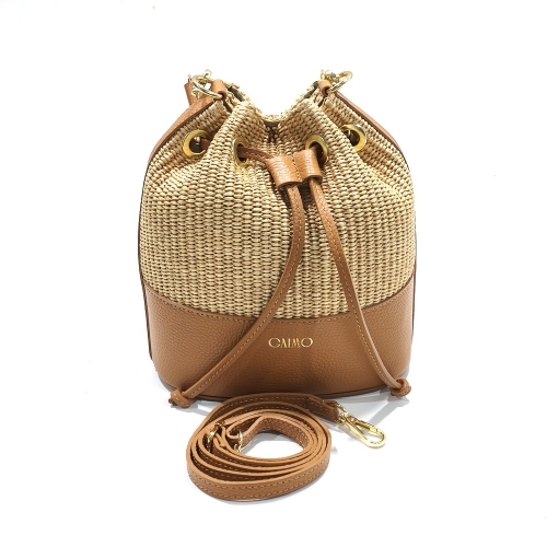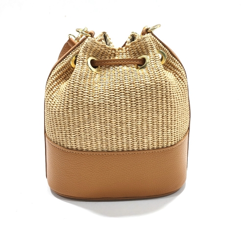 Bolso bombonera con correa para bandolera, fabricado en piel y rafia, de medidas aproximadas de 23 cm x 13 cm