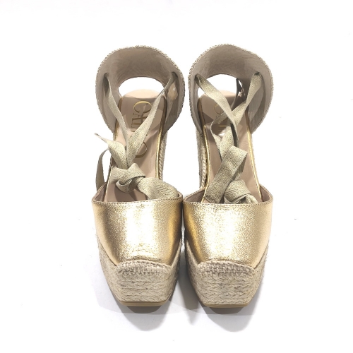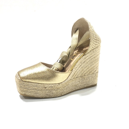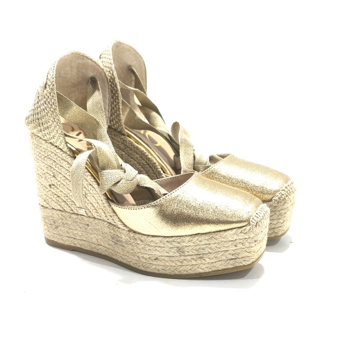 Alpargata atada el tobillo, fabricada en piel, con cuña de 9 cm  y plataforma de 3 cm de yute natural