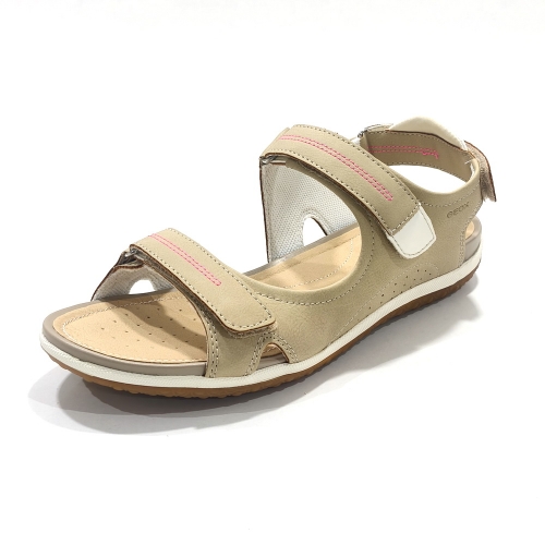 Sandalia de tiras ajustables con cinta adhesiva textil, fabricada en piel, con suela de goma transpirable