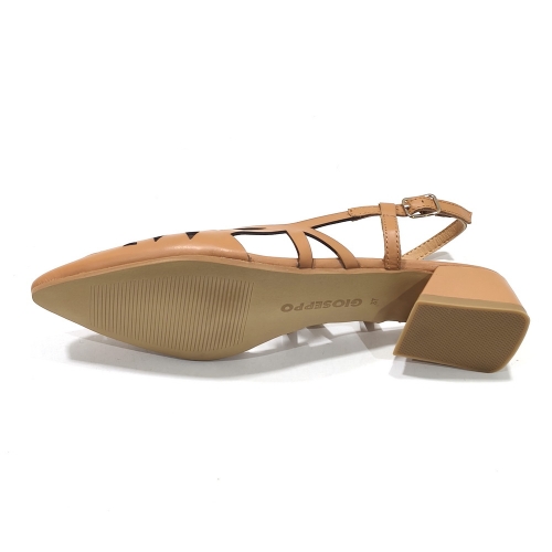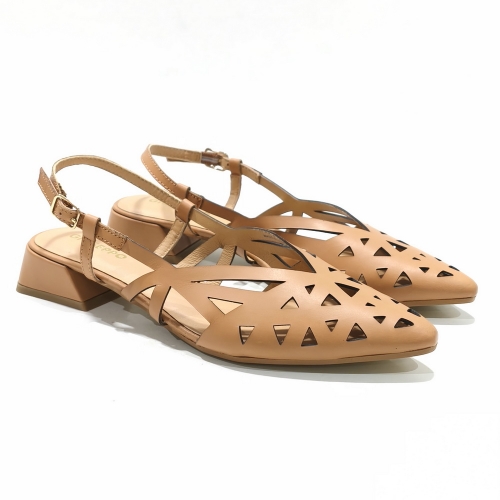 Zapato descubierto de talón, fabricado en piel troquelada, con suela de goma