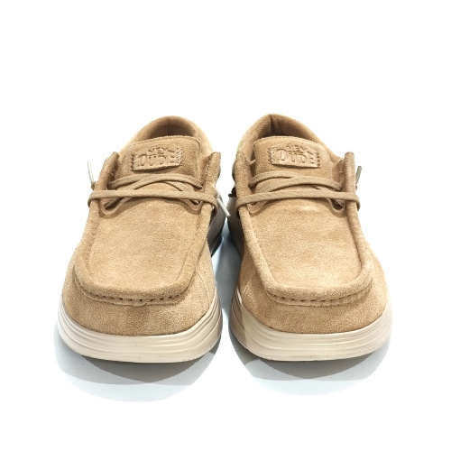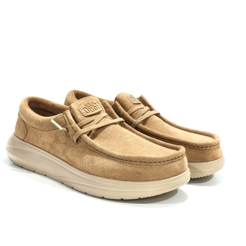 Zapato de cordoneras elásticas, fabricado en ante, con plantillas extraíbles y suela de goma