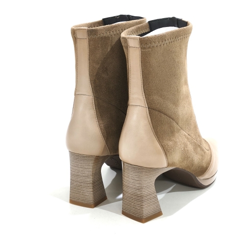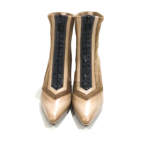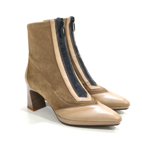 Botín con cremallera central, fabricado en piel y licra elástica, con tacón de 6 cm y suela de goma