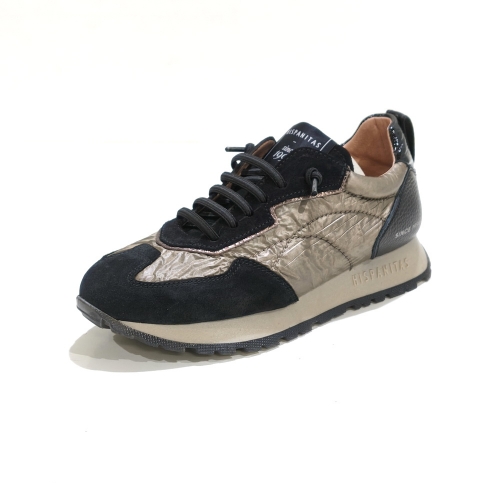 Zapato con cordoneras elásticas, fabricado en serraje y tela, con plantillas extraíbles y suela de goma