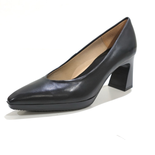 Zapato corte salón, fabricado en piel, con tacón de 6 cm y suela de goma