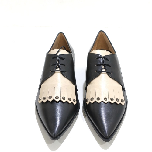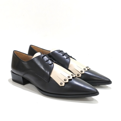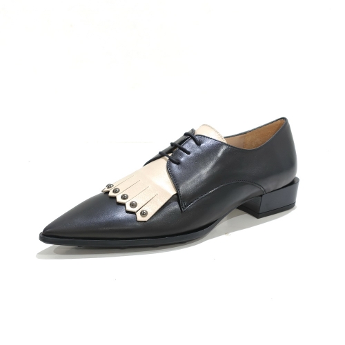 Zapato de cordoneras con flecos, fabricado en piel, con tacón de 2 cm y suela de goma