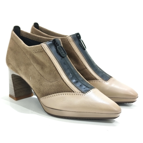 Zapato con cremallera en el empeine, fabricado en licra elástica y piel, con tacón de 6 cm y plataforma de 1 cm