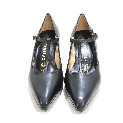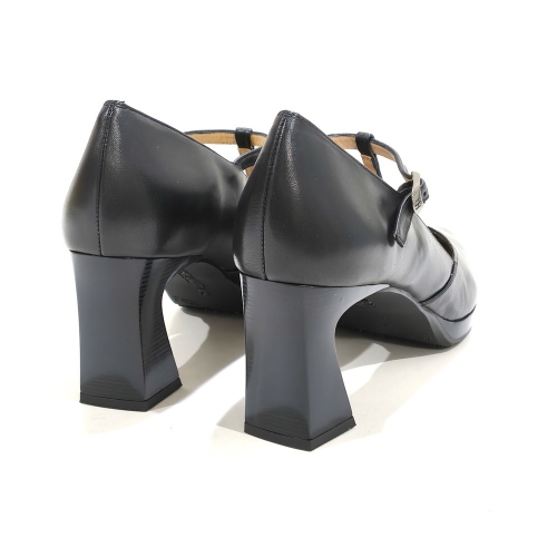 Zapato con tira en el empeine, fabricado en piel, con tacón de 6 cm y plataforma de 1 cm