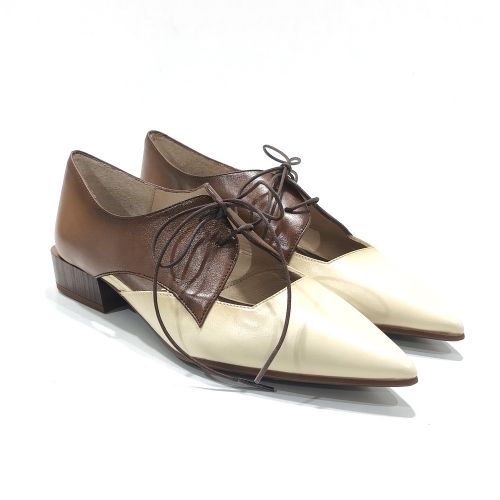 Zapato de cordoneras, fabricado en piel, con suela de goma y tacón de 2 cm