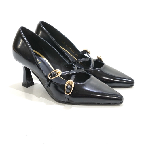 Zapato corte salón con dos tiras con hebillas, fabricado en piel, con tacón de 6 cm y suela de goma