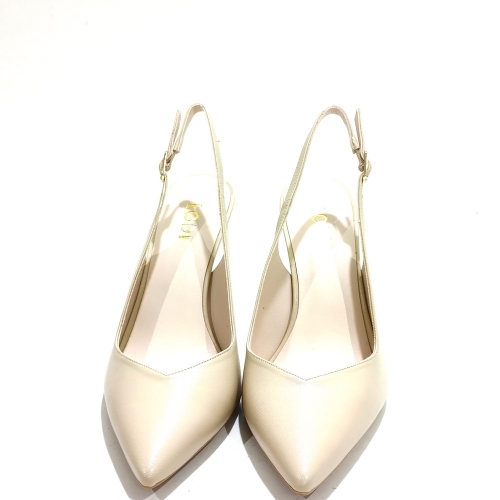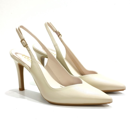 Zapato salón descubierto de talón, fabricado en piel, con tacón de 9 cm y suela de cuero