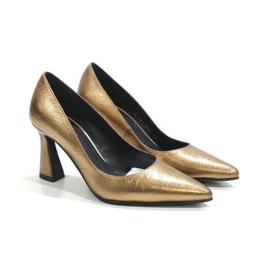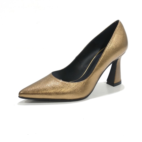 Zapato corte salón, fabricado en piel, con tacón de 7 cm y suela de goma