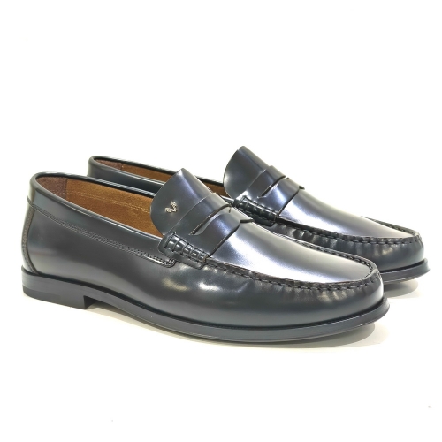 Zapato mocasín con antifaz, fabricado en piel, con suela de goma
