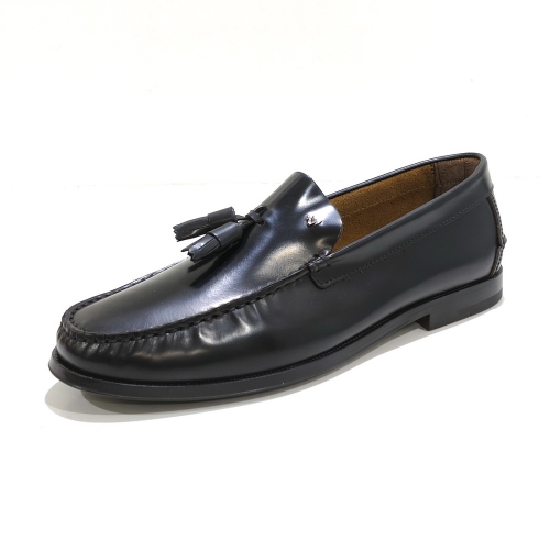 Zapato mocasín con borlas, fabricado en piel, con suela de goma