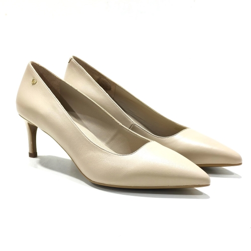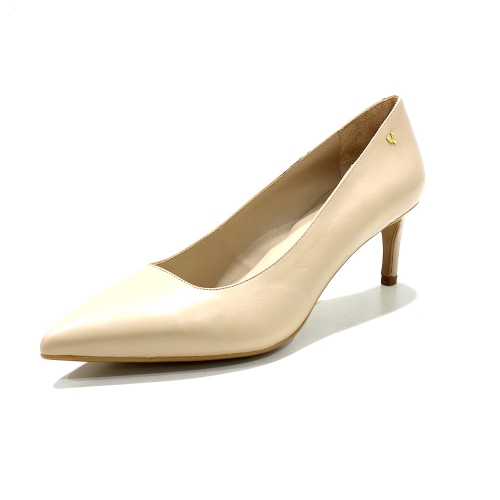 Zapato corte salón, fabricado en piel, con tacón de 6 cm y suela de goma