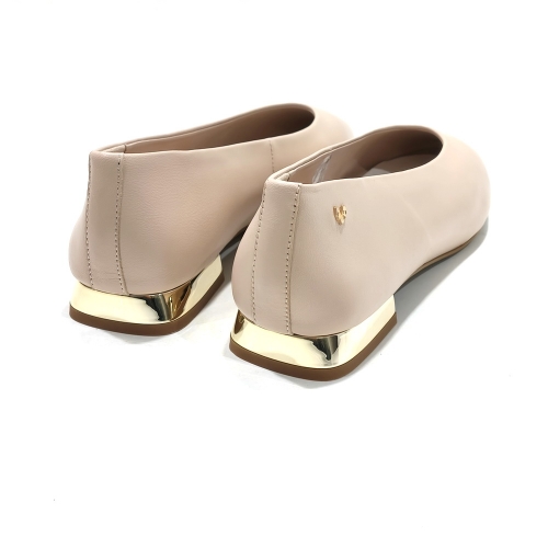 Sabrina plana de piel, con suela de goma y tacón de 1 cm dorado