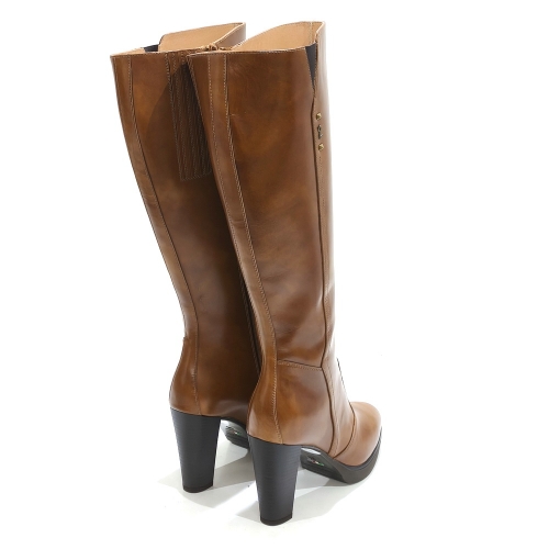 Bota de caña alta con cremallera lateral, fabricada en piel, con tacón de 7 cm