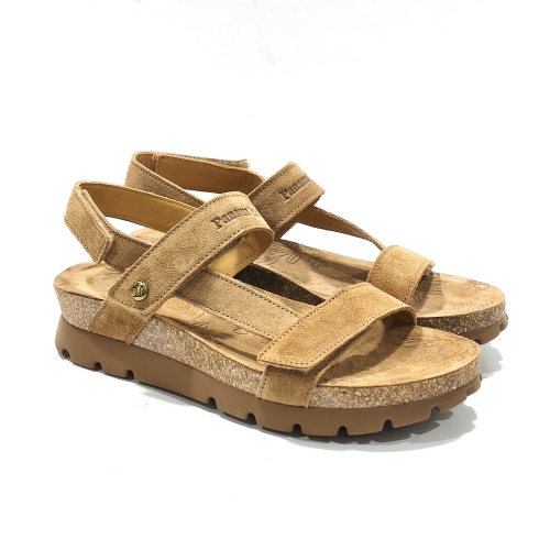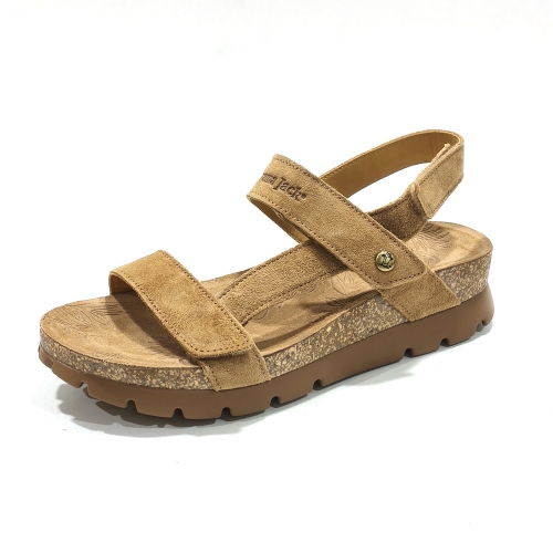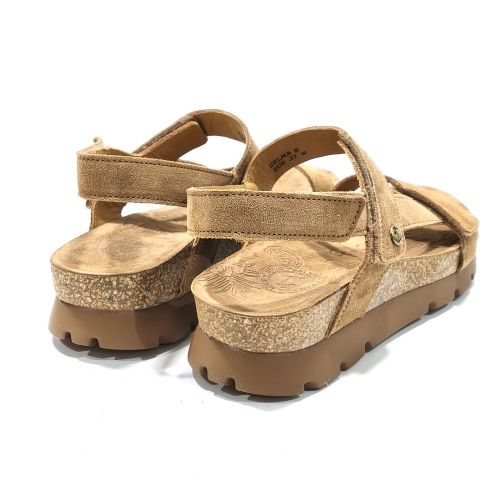 Sandalia de tiras ajustables con cinta textil adhesiva, fabricada en nobuk, con plataforma de 1 cm  de corcho