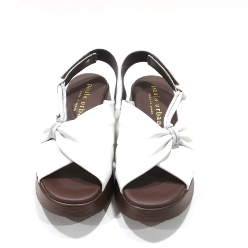 Sandalia con nudo con tira ajustables con cinta textil adhesiva, fabricada en piel, con cuña de 5 cm y plataforma e 3 cm