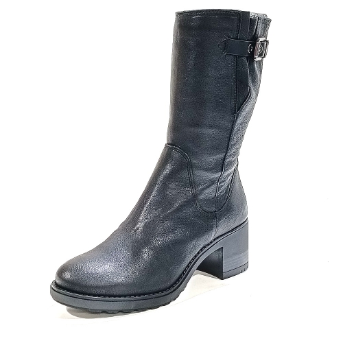 Bota de media caña con cremallera lateral, fabricada en piel negra, con tacón de 6 cm