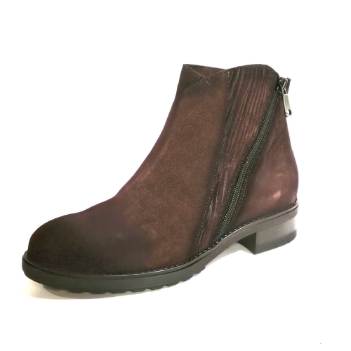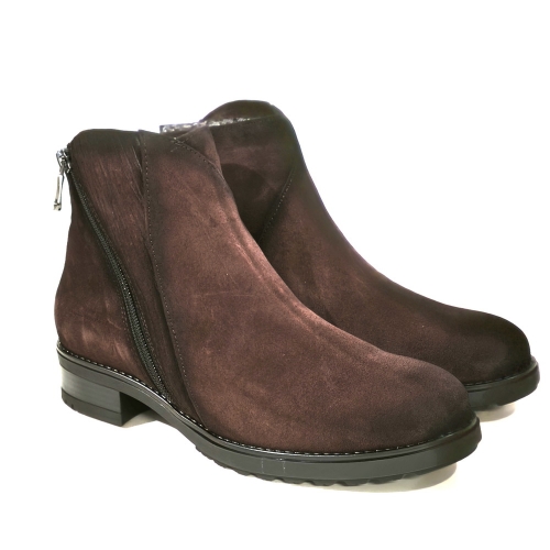 Botín con cremallera lateral, fabricado en serraje, con suela de goma