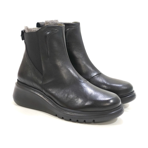 Botín con cremallera lateral y elástico, fabricado en piel, con cuña de 2 cm de goma