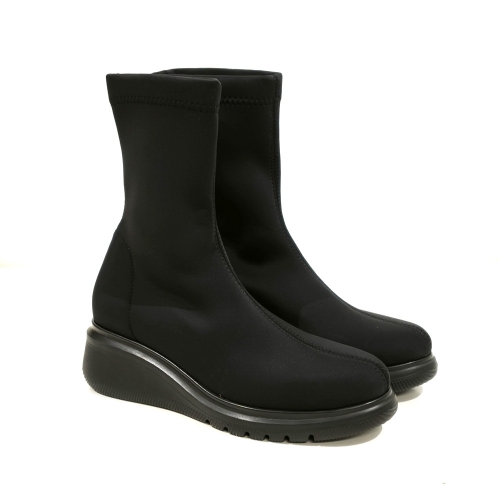 Botín fabricado en licra elástica, con cuña de goma de 3 cm