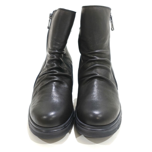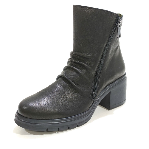 Botín con dos cremalleras laterales, fabricado en piel, con tacón de 5 cm  y suela de goma