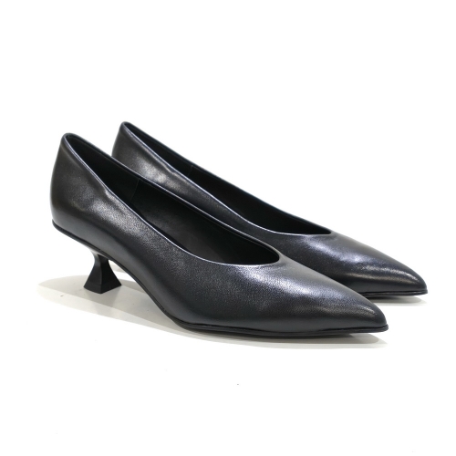 Zapato corte salón, fabricado en piel, con tacón de 5 cm y suela de goma