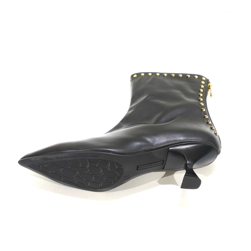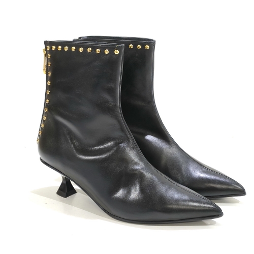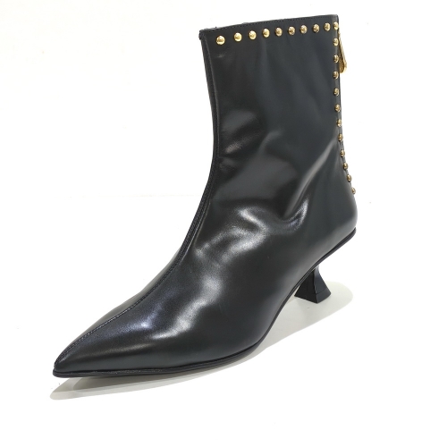 Botín con cremallera trasera y tachas metálicas, fabricado en piel, con tacón de 5 cm