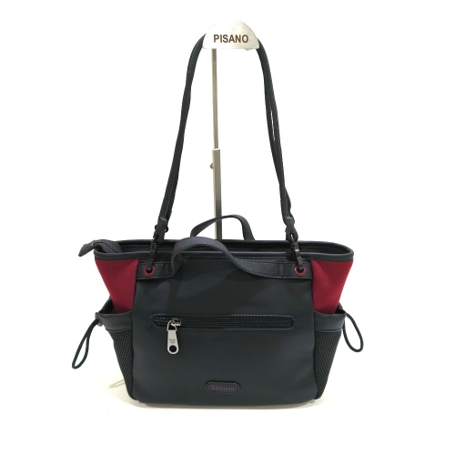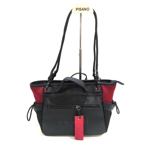 Bolso bandolera con dos asas cortas, fabricado en material textil, de medidas aproximadas de 30 cm x 22 cm