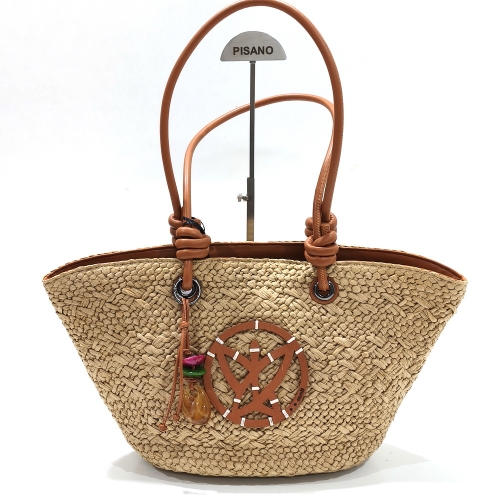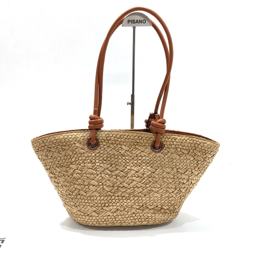 Bolso capaza con dos asas cortas, fabricado en rafia natural, de medidas aproximadas de 47 cm x 32 cm