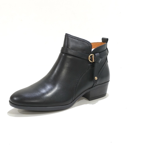 Botín con cremallera lateral y hebilla, fabricado en piel, con plantillas extraíbles y tacón de 5 cm