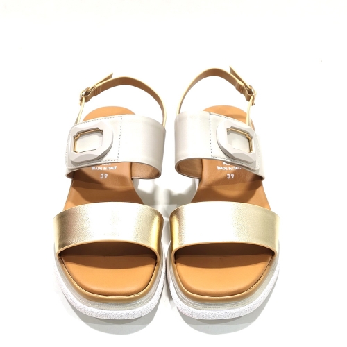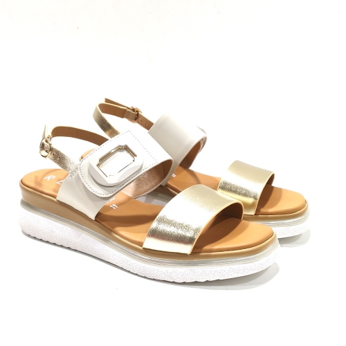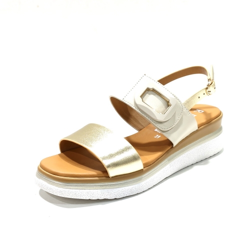 Sandalia con tiras ajustable con cinta textil adhesiva con adorno, fabricada en piel, con cuña de 3 cm y plataforma de 2 cm