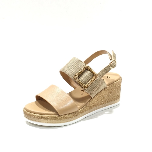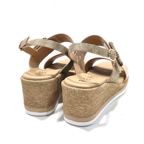 Sandalia de tiras ajustables  con cinta textil adhesivas, con cuña de goma de 5 cm
