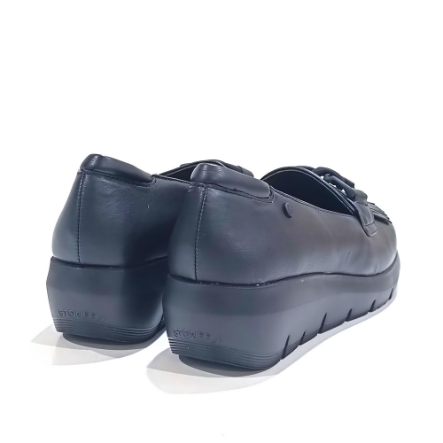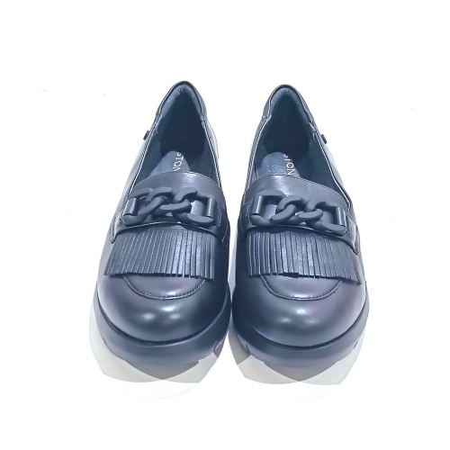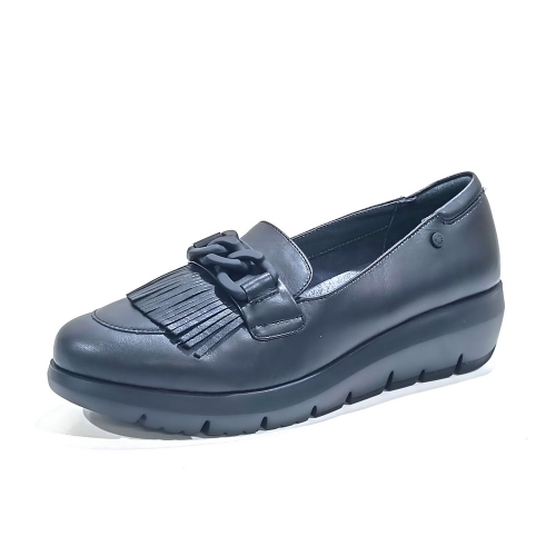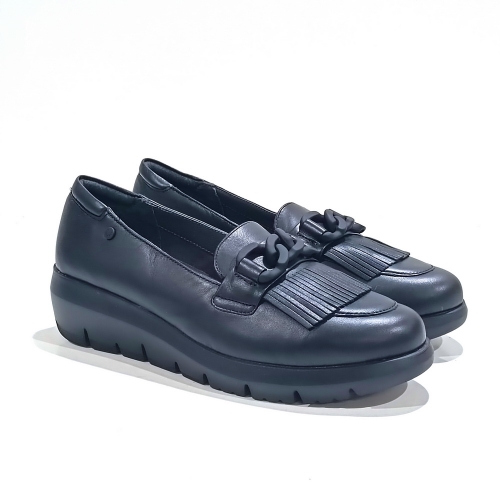 Zapato mocasín con estribo y flecos, fabricado en piel, con plantillas extraíbles y suela de goma