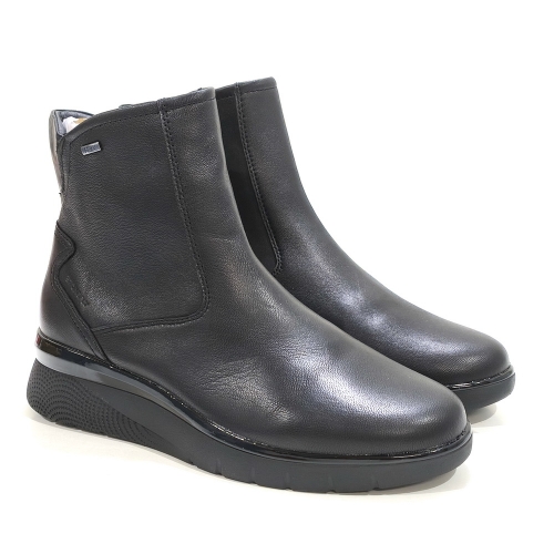 Botín con cremallera lateral, fabricado en piel, con plantillas extraíbles y cuña de goma de 3 cm