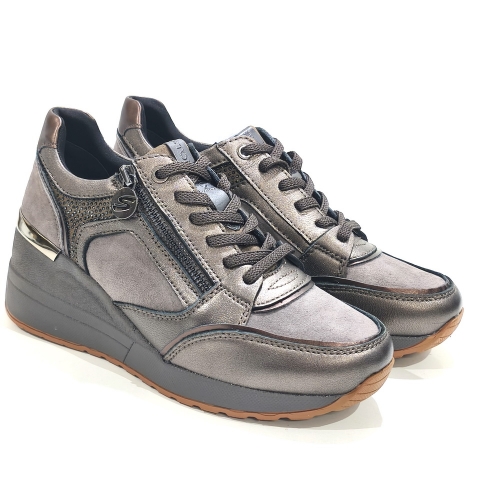 Zapato de cordoneras con cremallera lateral, fabricado en piel, con plantillas extraíbles y cuña de goma de 5 cm