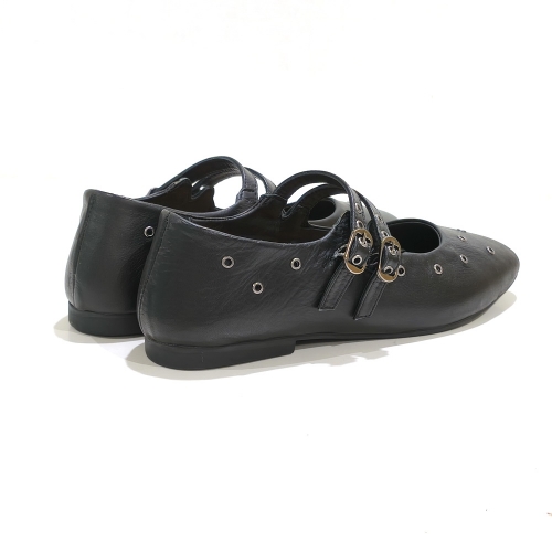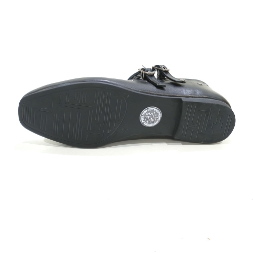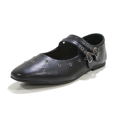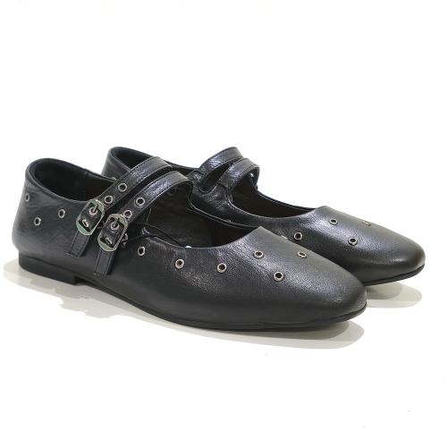Zapato con dos tires y tachuelas metálicas, fabricado en piel , con suela de goma