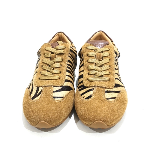 Zapato de cordoneras, fabricado en ante animal print, con suela de goma