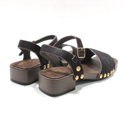Sandalia con tira con hebilla, fabricada en potro, con tacón de 3 cm