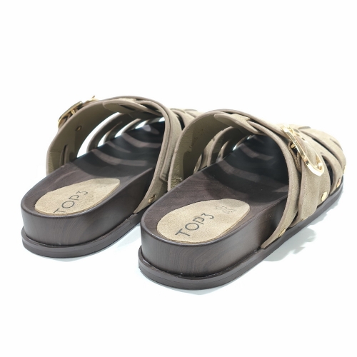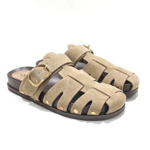 Zueco con hebilla, fabricado en serraje con tachas metálicas, con suela de goma