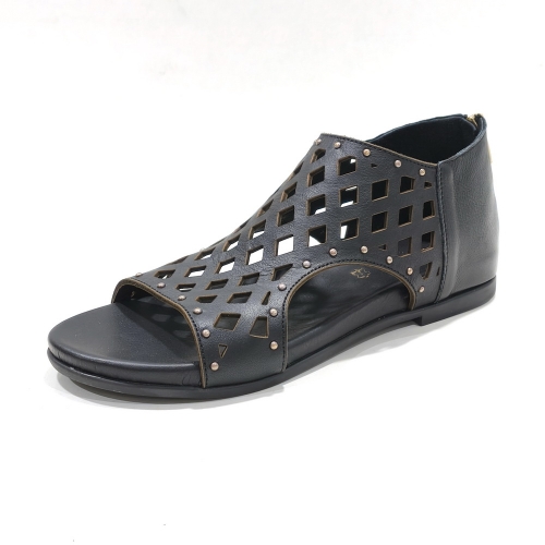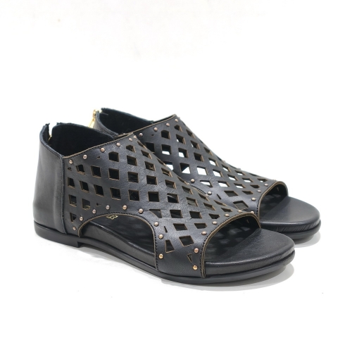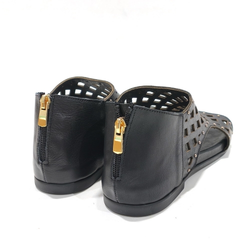 Sandalia de talón cerrada con cremallera trasera, fabricada en piel troquelada, con suela de goma