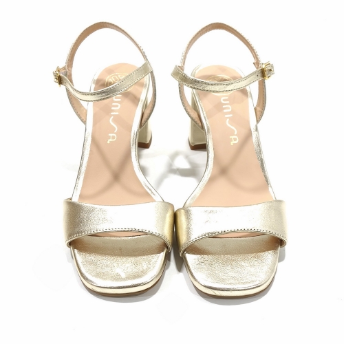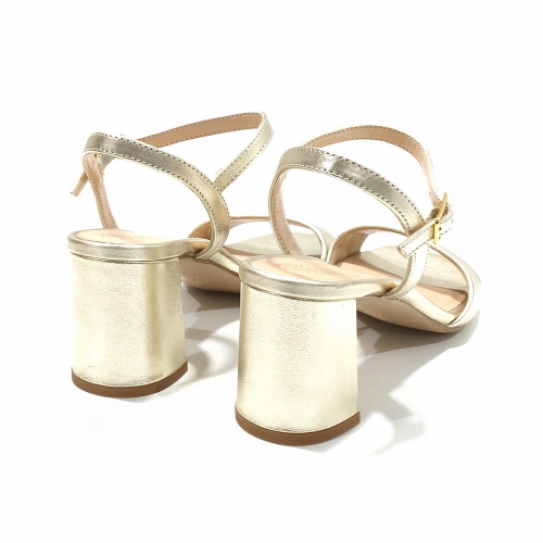 Sandalia con tira en el empeine con hebilla, fabricada en piel, con tacón de 5 cm y suela de goma