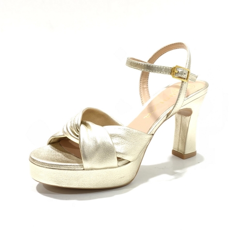 Sandalia con tira en el empeine con hebilla, fabricada en piel, con tacón de 8 cm y plataforma de 2.5 cm