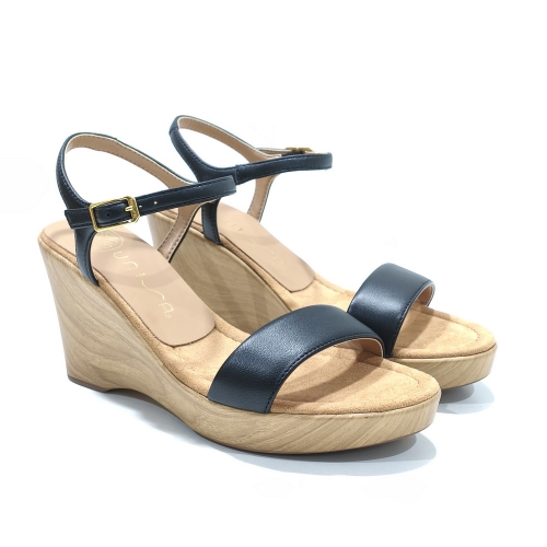 Sandalia de tiras, fabricada en piel, con cuña de 6 cm y plataforma de 1.5 cm