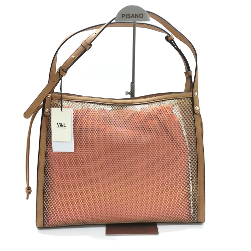 Bolso de dos asas con bolsa interior de tela, fabricado en material sintético, de medidas aproximadas de 30 cm x 37 cm